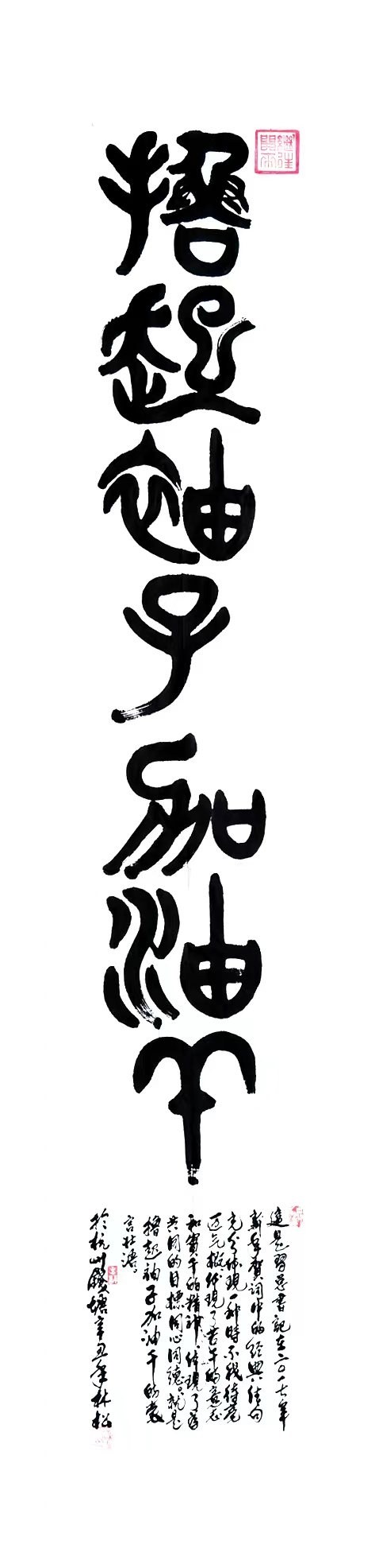 2020年度有三位著名书画评论家:石振华为其评论《穷研篆籀,功省名成》和著名书画家刘建明老师为其《饱满圆厚,飞仪多姿》刘淼老师为其《法由师授写正宗,不遗余力弘文化》进行为其作品的评论。 2021年1月参加(开年巨献)。