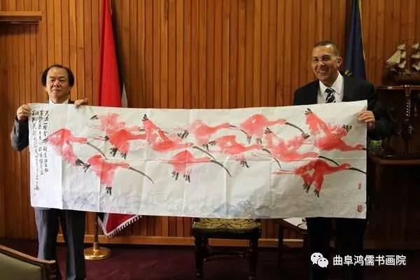 特尼立达和多巴哥总统(卡莫纳)在总统府亲切接见画家赵言斌并收藏作品(红鸟)